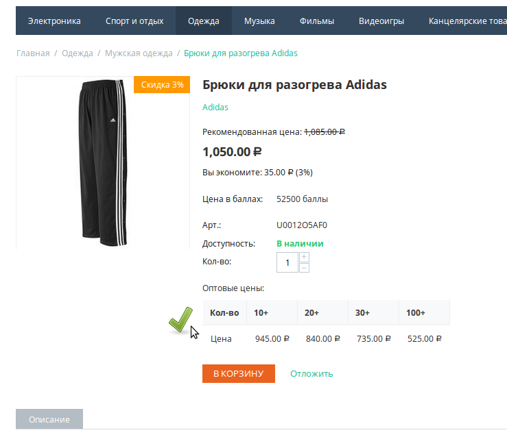Наша задача отобразить оптовые скидки на странице списка товаров. Оптовые скидки отображаются в карточке товара, изучим как это происходит и сделаем тоже самое со списком товаров.