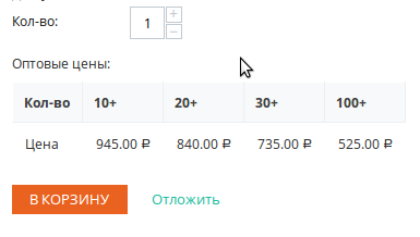 Вы можете задать особые цены на ваши товары при оптовой покупке или для определённых групп покупателей.