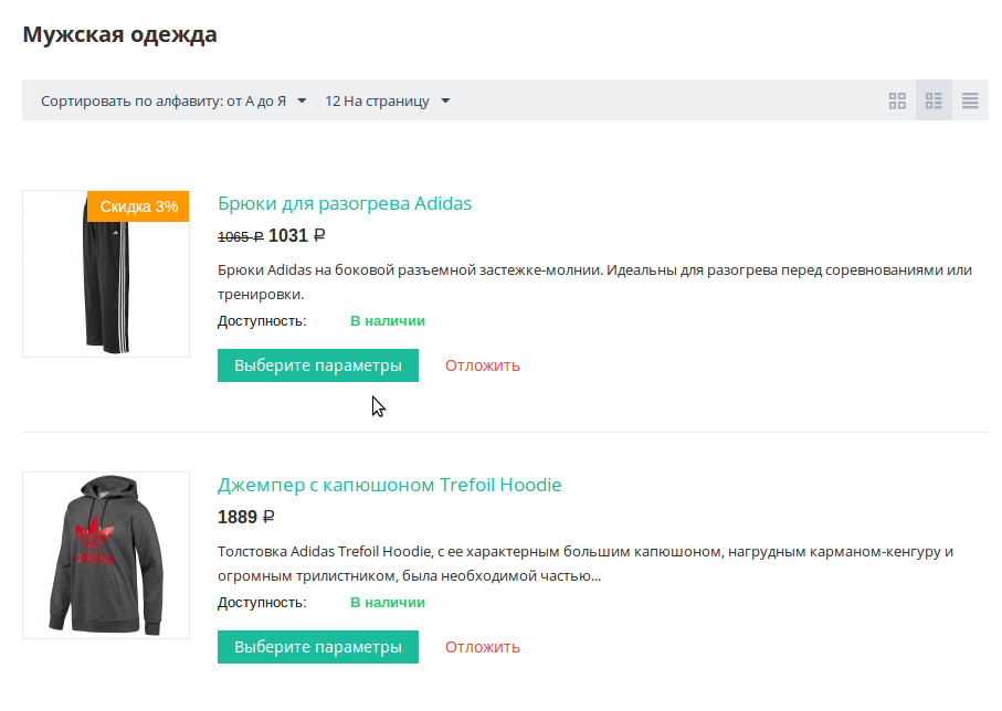 Вы можете включить отображение опций на странице каталога, если это необходимо.
