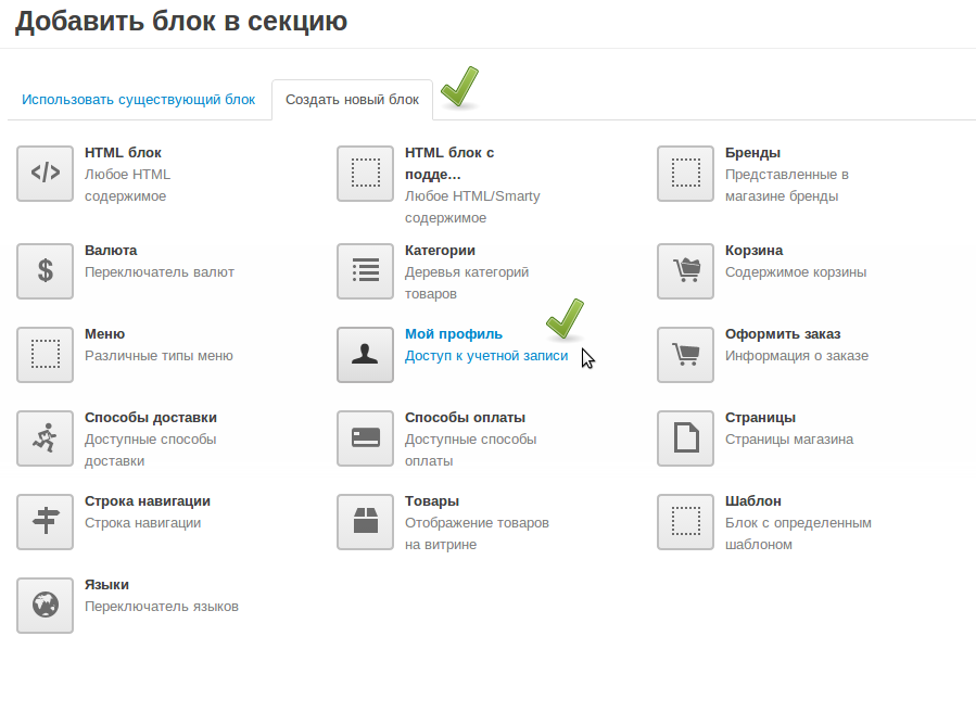 Создание нового шаблона для блока (на основе «Мой профиль»)¶