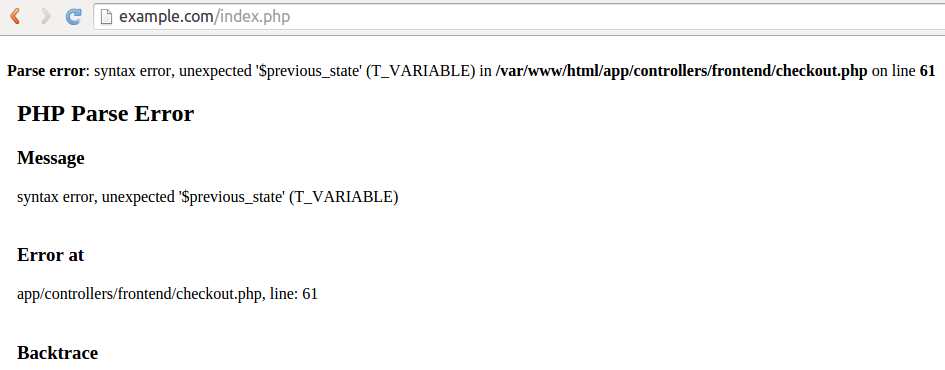 Теперь в случае ошибки вы увидите сообщение об ошибке, а также путь к файлу, который эту ошибку вызвал.