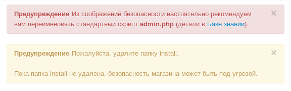 Предупреждение! Пожалуйста, удалите папку install. Пока папка install не удалена, безопасность магазина может быть под угрозой.