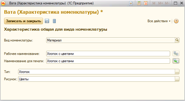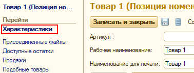 Вид характеристики Описание Общие для вида номенклатуры Характеристики будут общие для данного вида товара, т.е. один раз создаете характеристики для этого вида, а потом используете для любой номенклатуры этого вида. Индивидуальные для номенклатуры Для каждой номенклатуры этого вида придется создавать характеристики индивидуально. После заполнения всех полей нажмите на кнопку “Сохранить”.