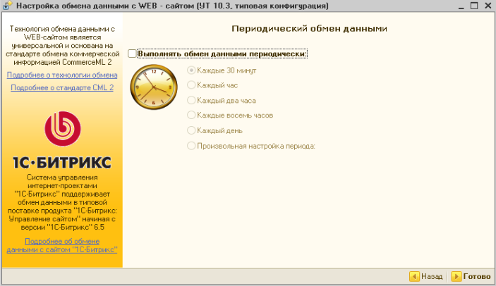 На следующем шаге задайте расписание обмена данными и нажмите кнопку “Готово”.