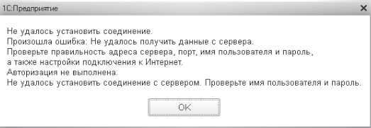 При проверке соединения или при обмене появляется ошибка “Не удалось установить соединение”.