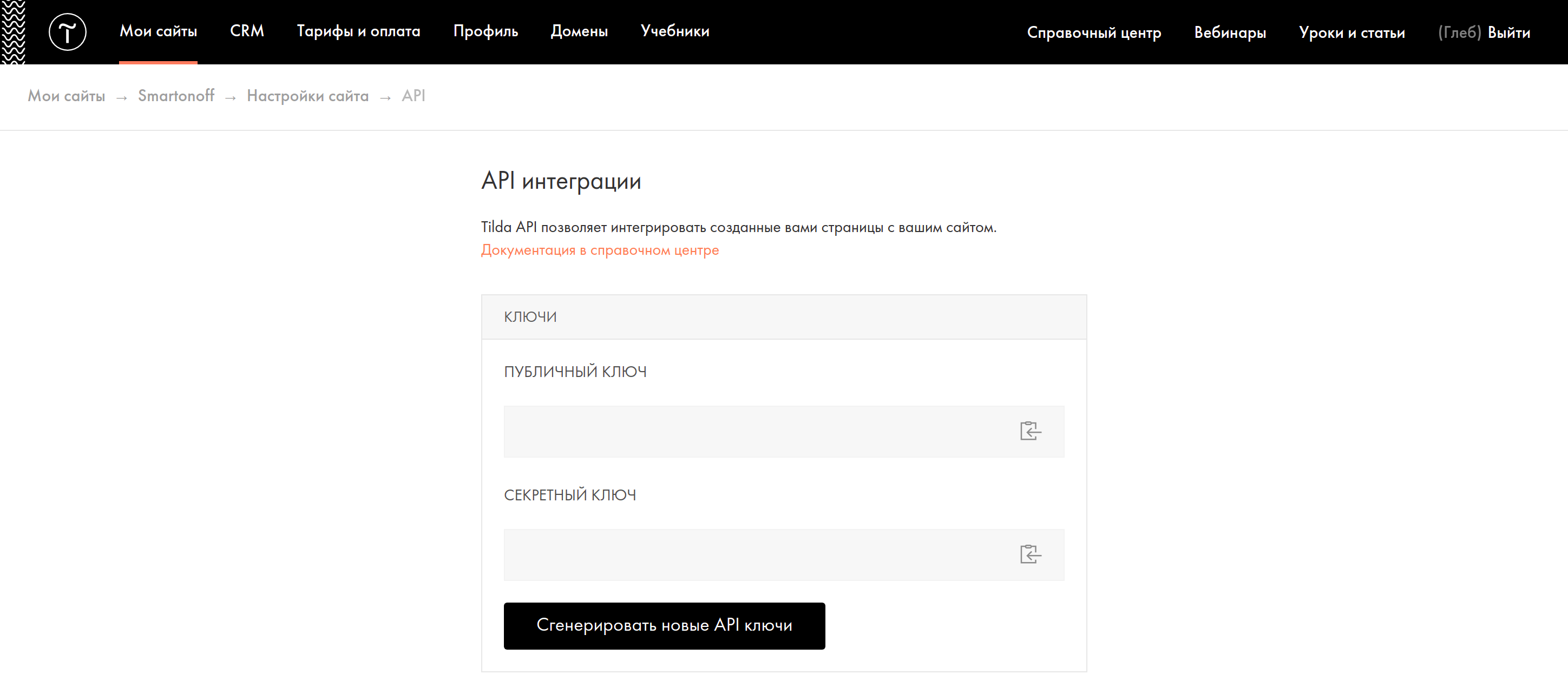 Публичный API ключ, Секретный API ключ. Для подключения Tilda к CS-Cart используются ключи, которые находятся в личном кабинете на сайте Tilda.