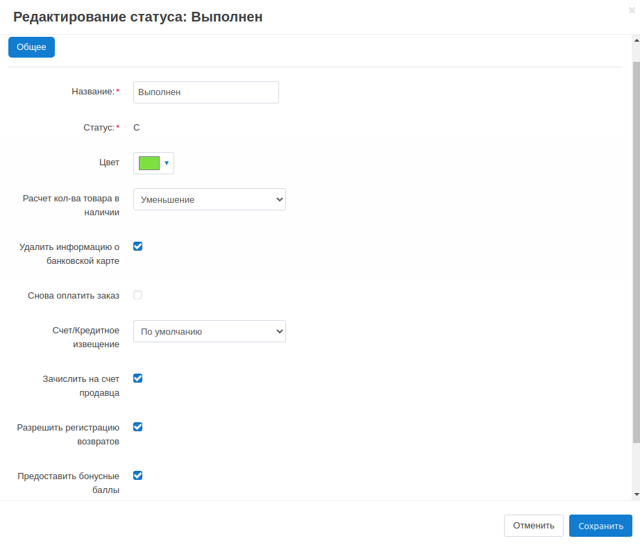 Кликните по статусу заказа, для которого вы хотите разрешить возврат и поставьте галочку Разрешить регистрацию возвратов.