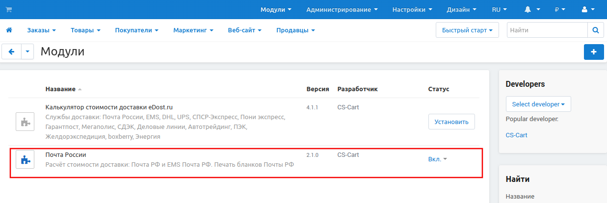 Модуль “Почта России” интегрирует ваш магазин или маркетплейс с сервисом Почты России и позволяет:
