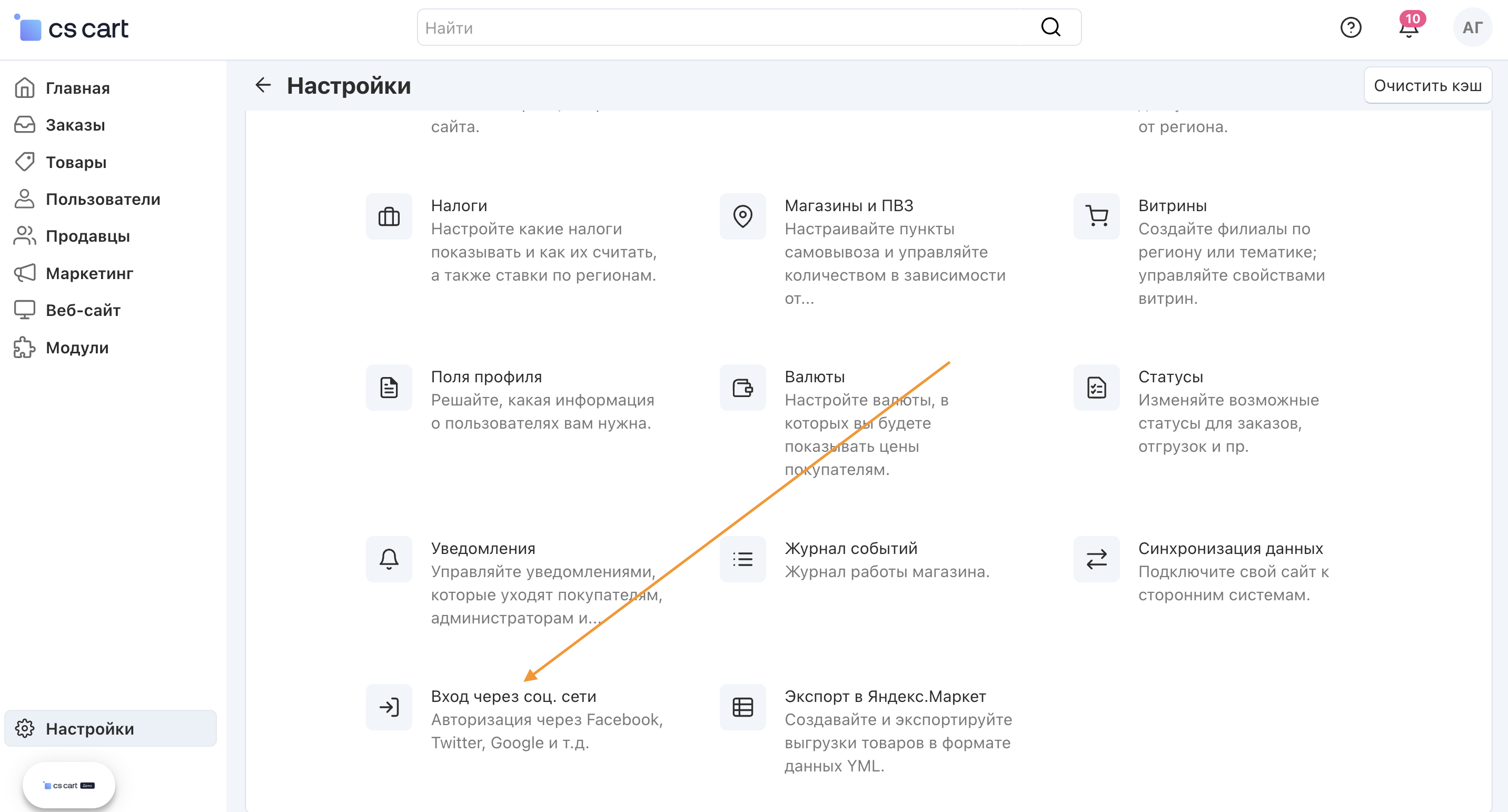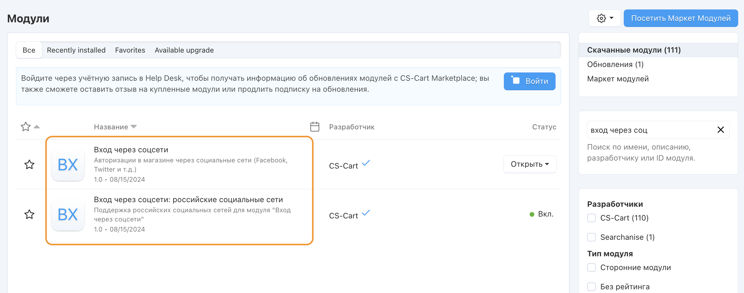 Модуль CS-Cart “Вход через соцсети” позволяет покупателям авторизоваться с помощью социальных сетей и почтовых сервисов (ВКонтакте, Яндекс, Mail.ru, Одноклассники и др.).