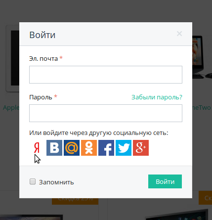 Модуль «Вход через соцсети» позволяет покупателям авторизоваться в вашем интернет-магазине с помощью: