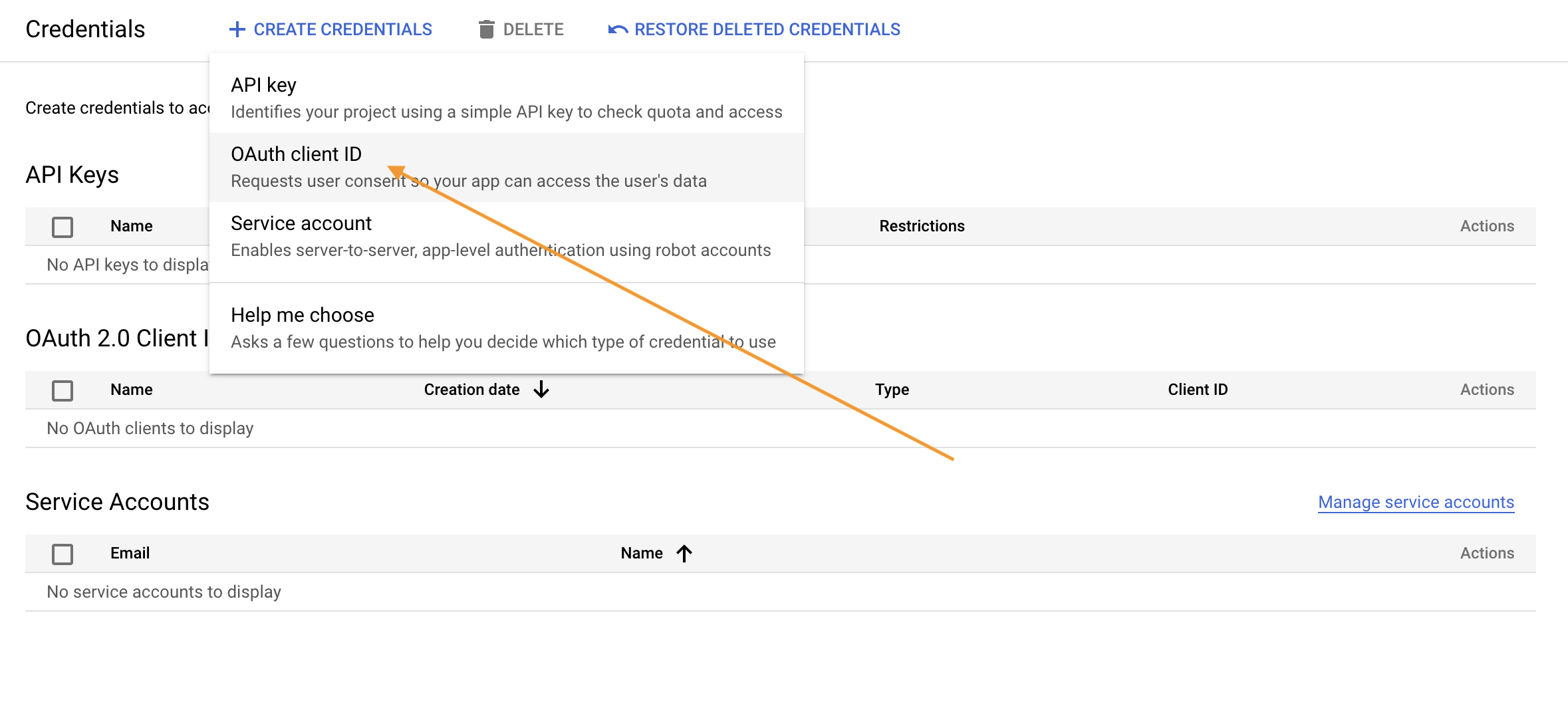 Перейдите на страницу Учётные данные (Credentials) и создайте Идентификатор клиента OAuth (OAuth Client ID) для веб-приложения (web application).