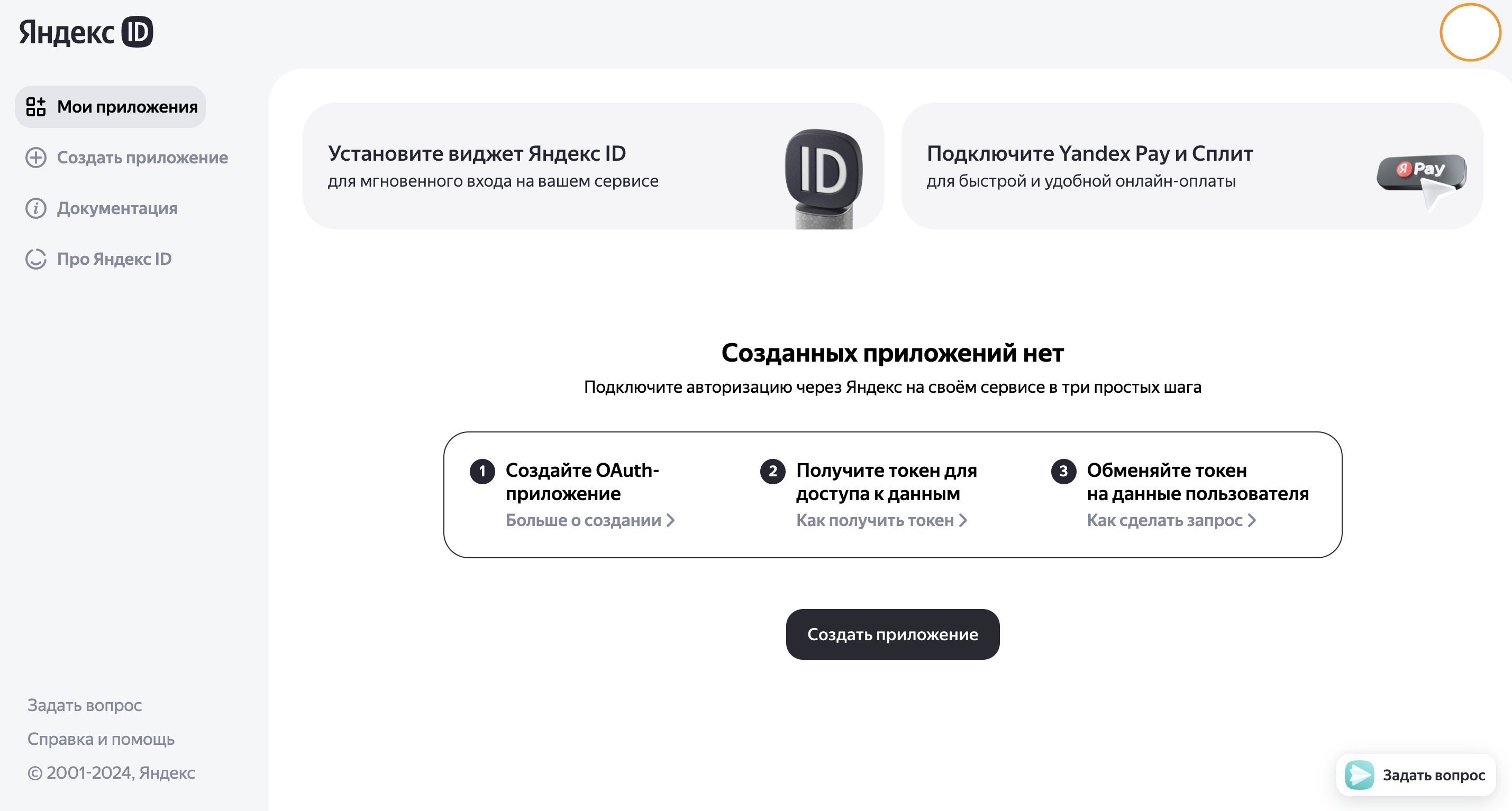 Создайте новое приложение на OAuth-сервере Яндекса.