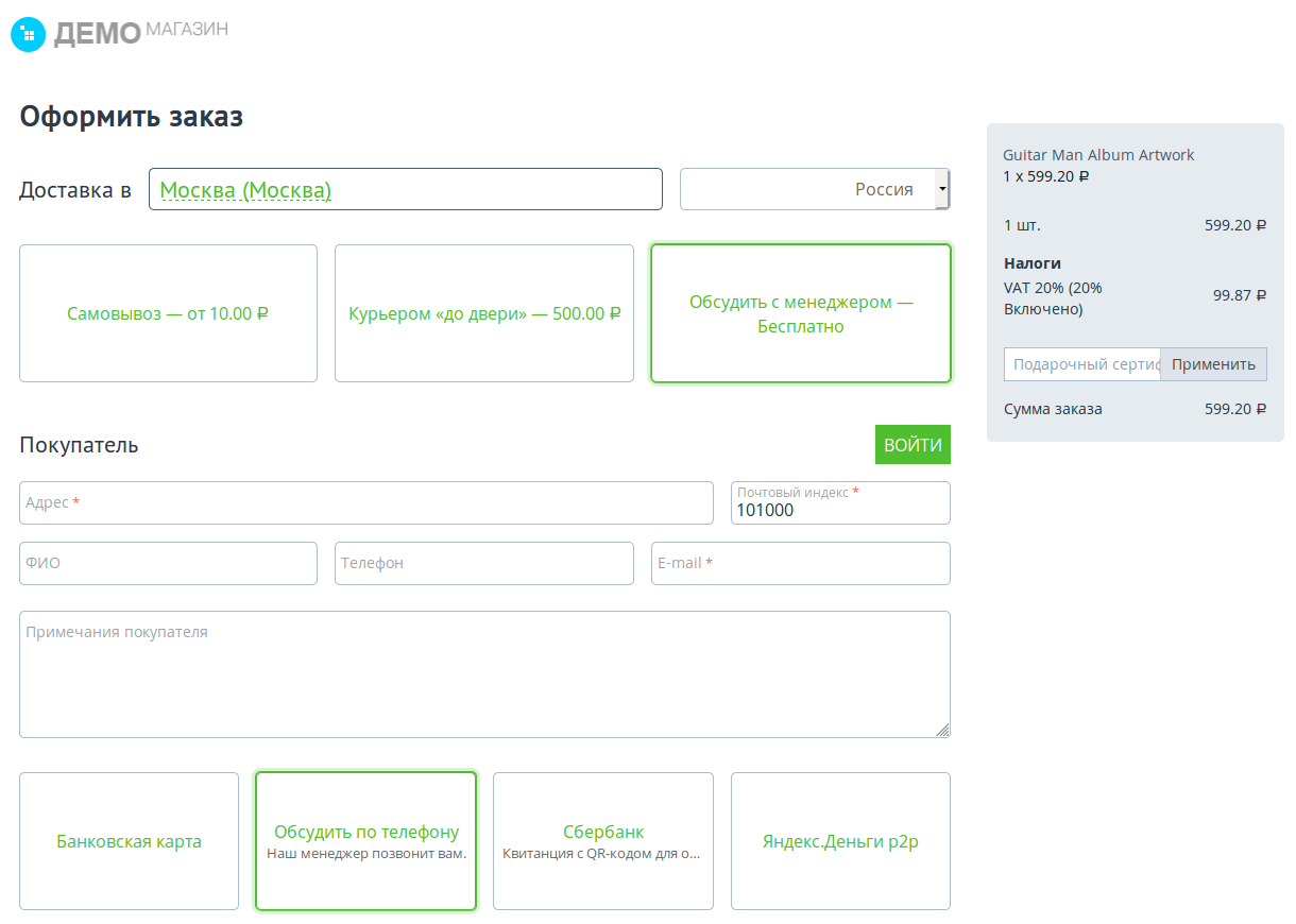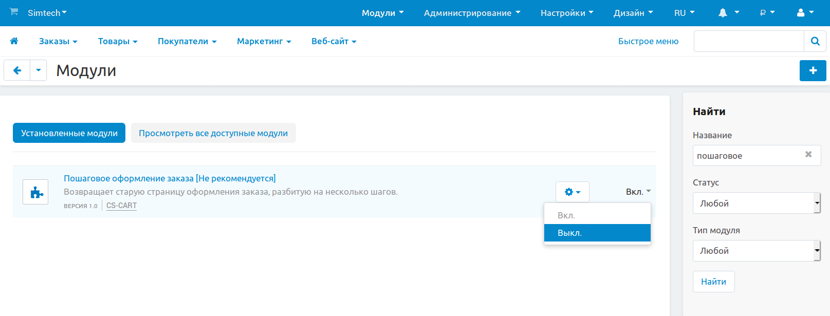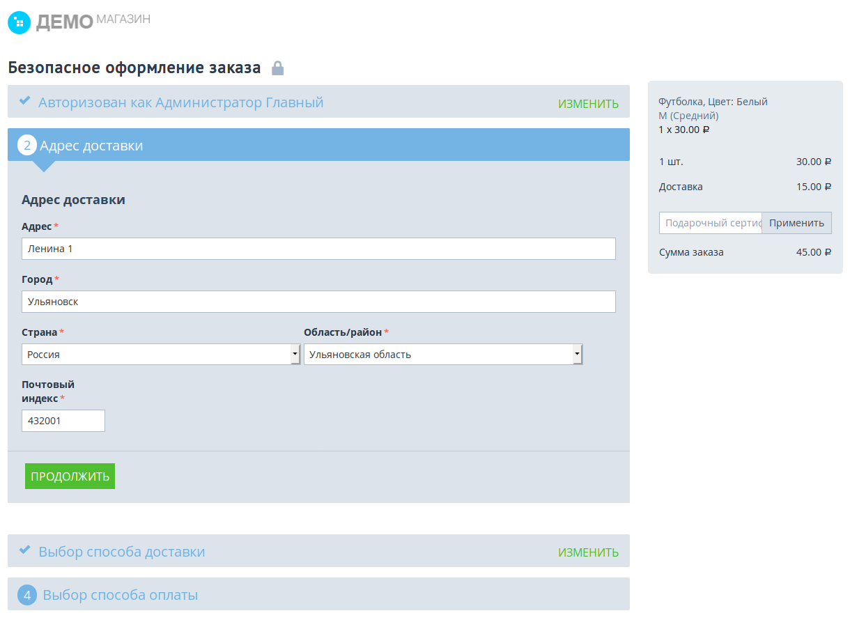 “Пошаговое оформление заказа” [Не рекомендуется]¶