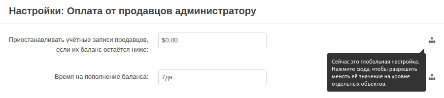 - Настройки из старого модуля “Выплата долгов продавцов” (максимальный размер долга и срок на пополнение баланса) переедут в новый модуль.
