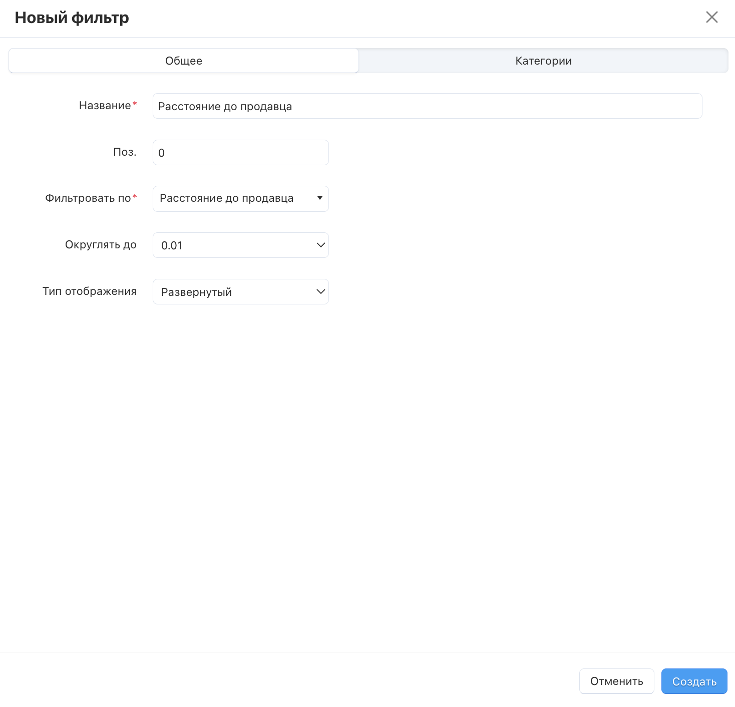 С информацией о том, как добавить новый фильтр, вы можете ознакомиться в этой статье. Чтобы создать фильтр по расстоянию, в поле Фильтровать по установите значение Расстояние до продавца.