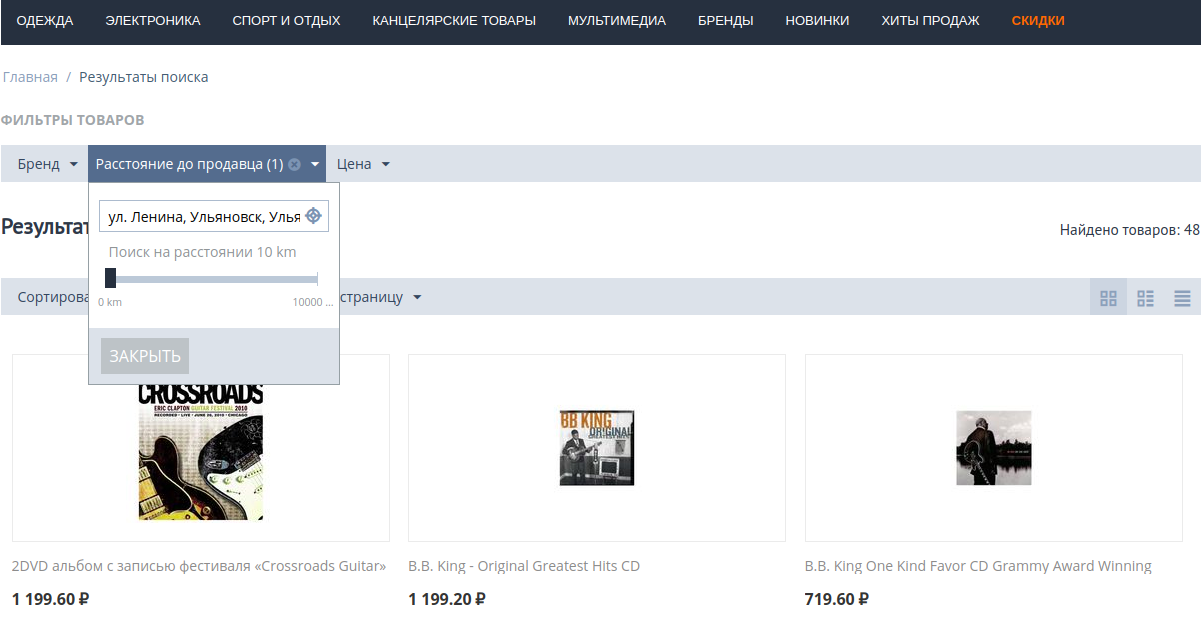 Фильтр позволяет покупателям ограничивать список товаров, отображаемых в соответствии с определенными критериями. Модуль “Местоположение продавцов [Beta]” позволяет выбирать местоположение и производить поиск товаров на определенном расстоянии от этого местоположения.