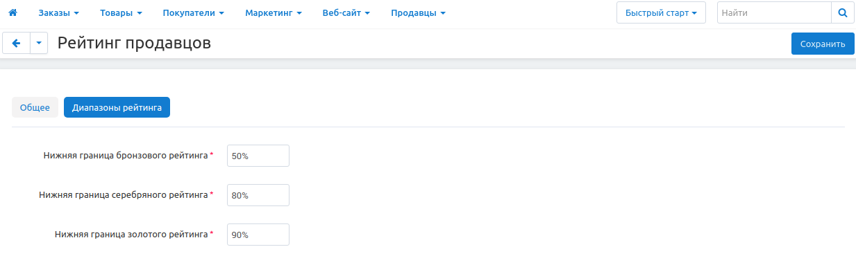 На вкладке Общее настройте формулу, по которой будет рассчитываться рейтинг продавцов.