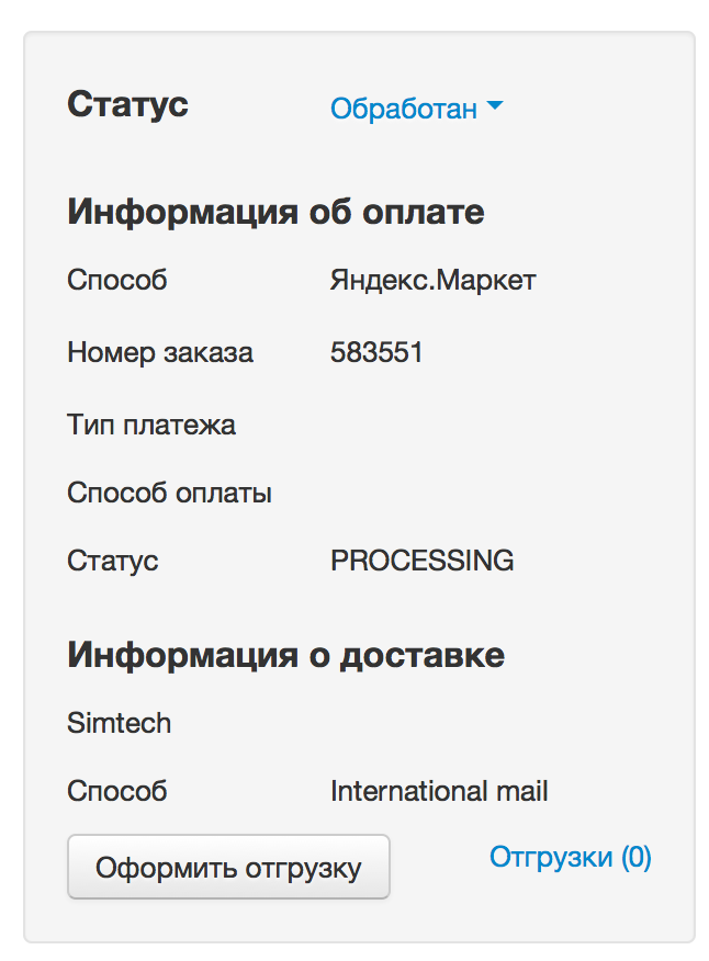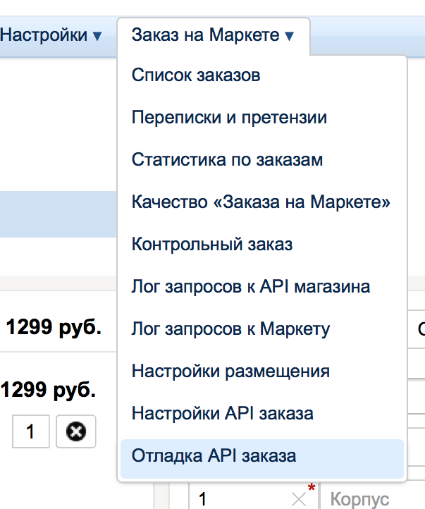 Для тестирования настроек покупки на Маркете необходимо перейти на страницу “Отладка API заказа”