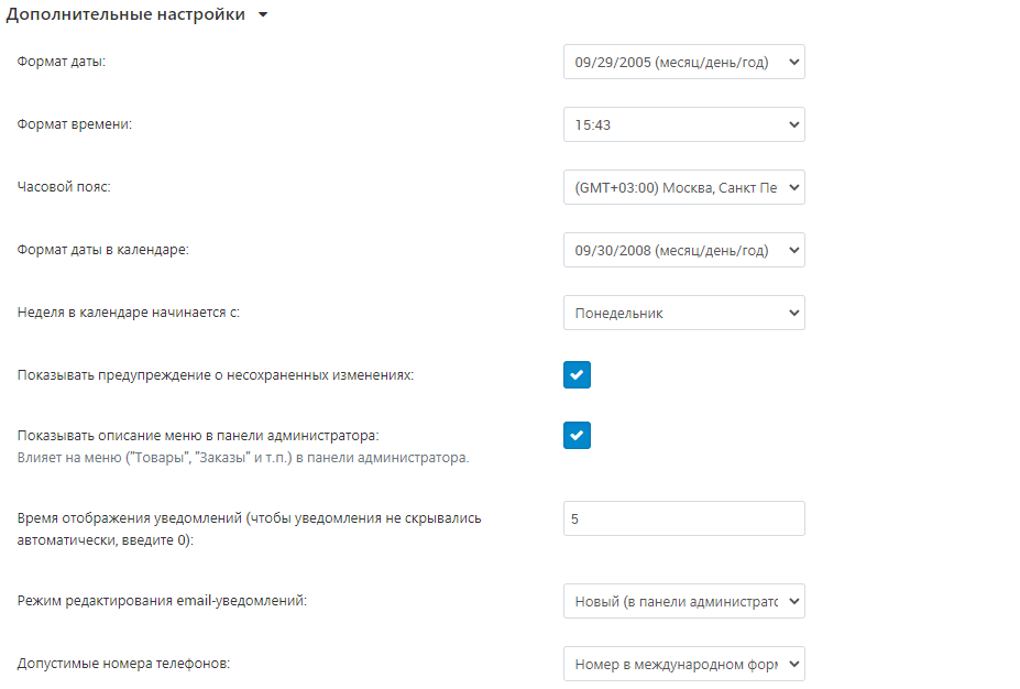 Как изменить часовой пояс и формат даты и времени в CS-Cart/Multi-Vendor¶