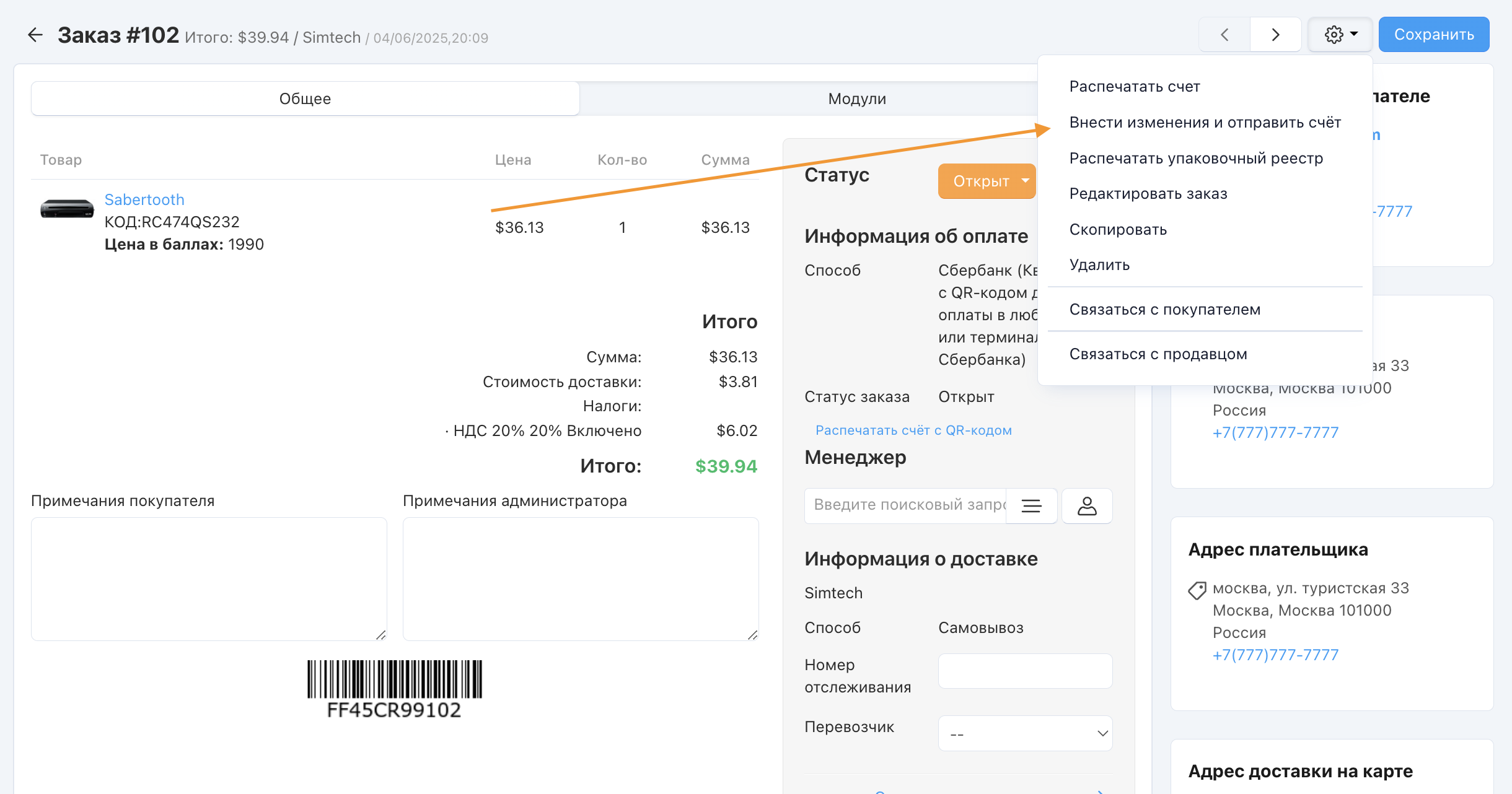 Как просматривать, изменять и отправлять счета отдельных заказов¶