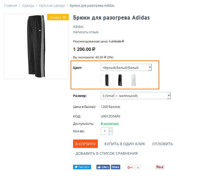 Название — название варианта опции. Например, если сама опция называется Размер, то варианты могут называться S, M, L, XL, XXL, и т.д.