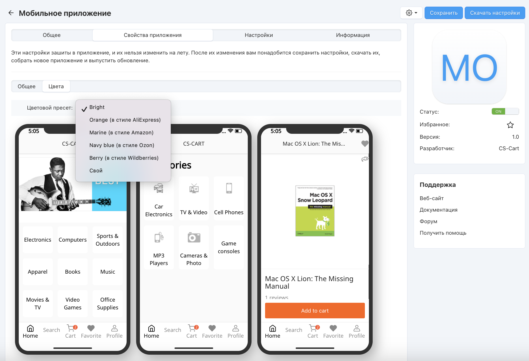 В Multi-Vendor встроен модуль Мобильное приложение (не установлен по умолчанию). Этот модуль позволяет: