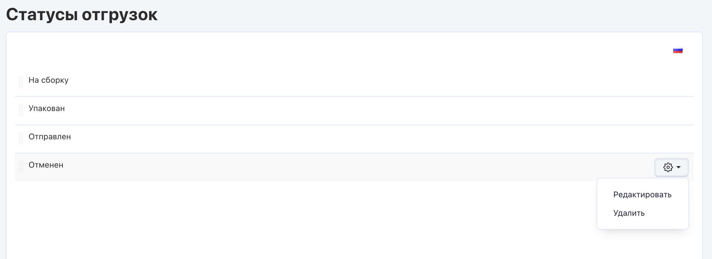 Откройте страницу Настройки → Статусы → Статусы отгрузок.