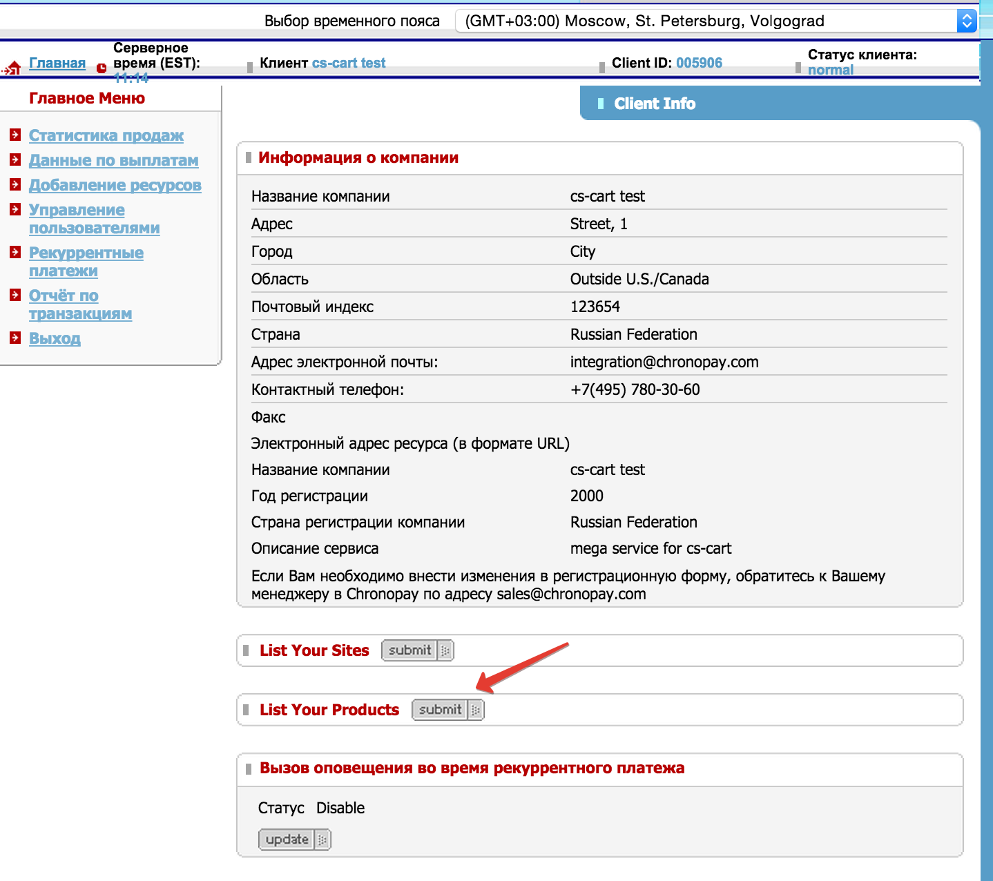 Настройте Chronopay