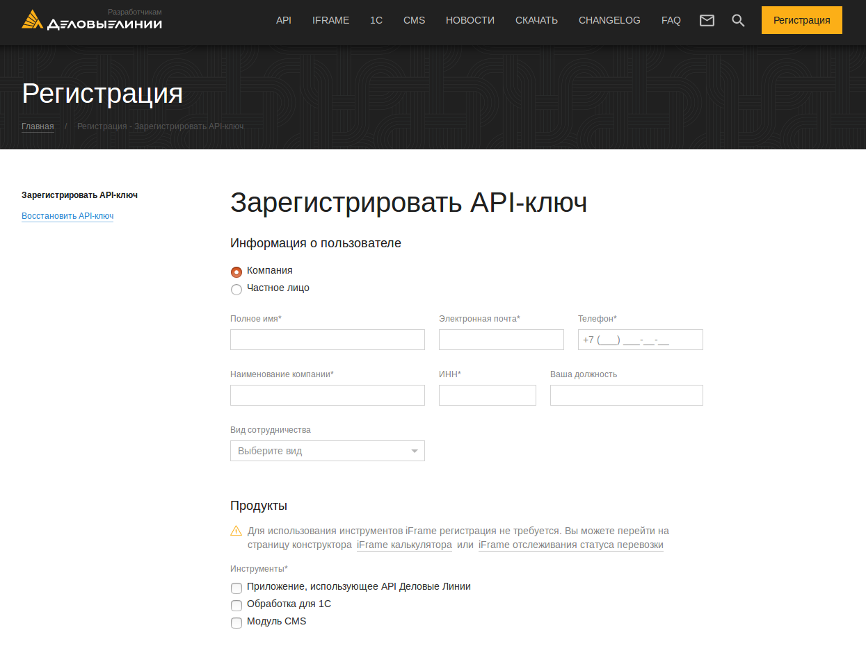 Откройте сайт "Деловых линий" и зарегистрируйтесь.
