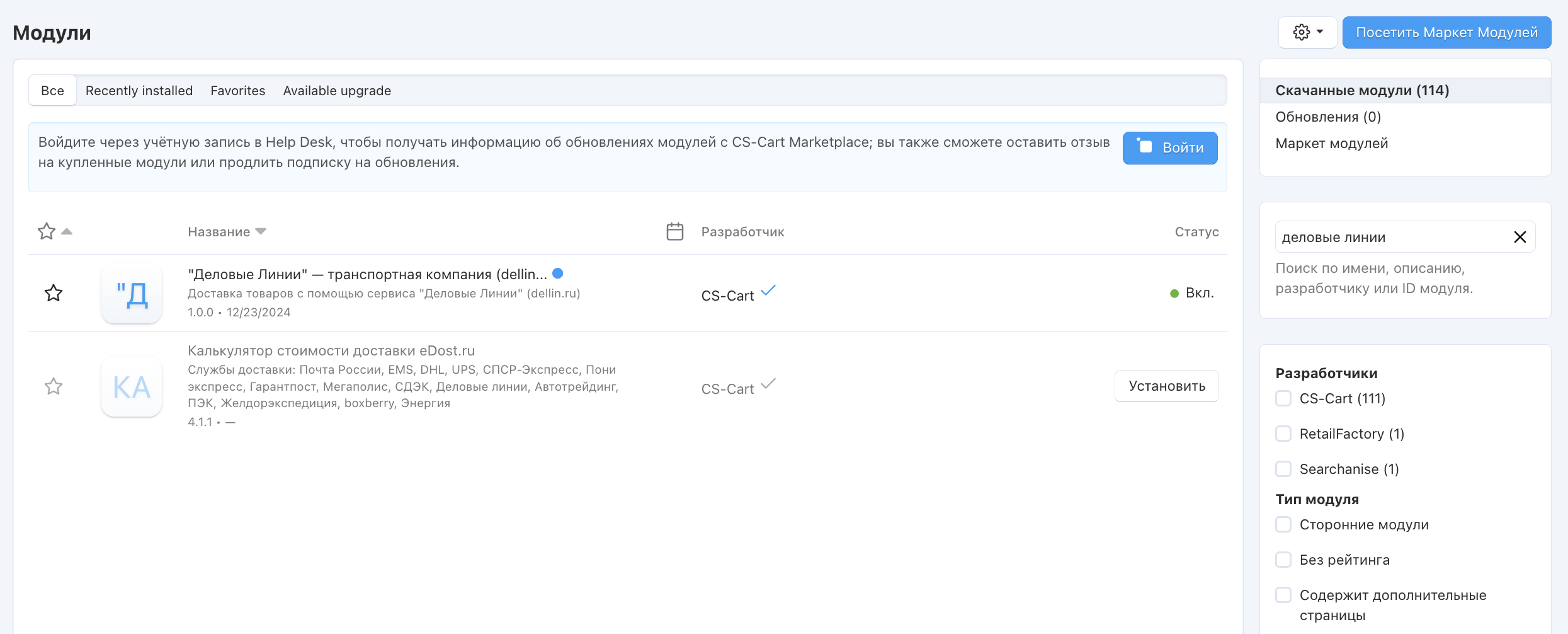 Автоматический расчёт стоимости доставки “Деловые линии” входит в “Русскую версию CS-Cart”.