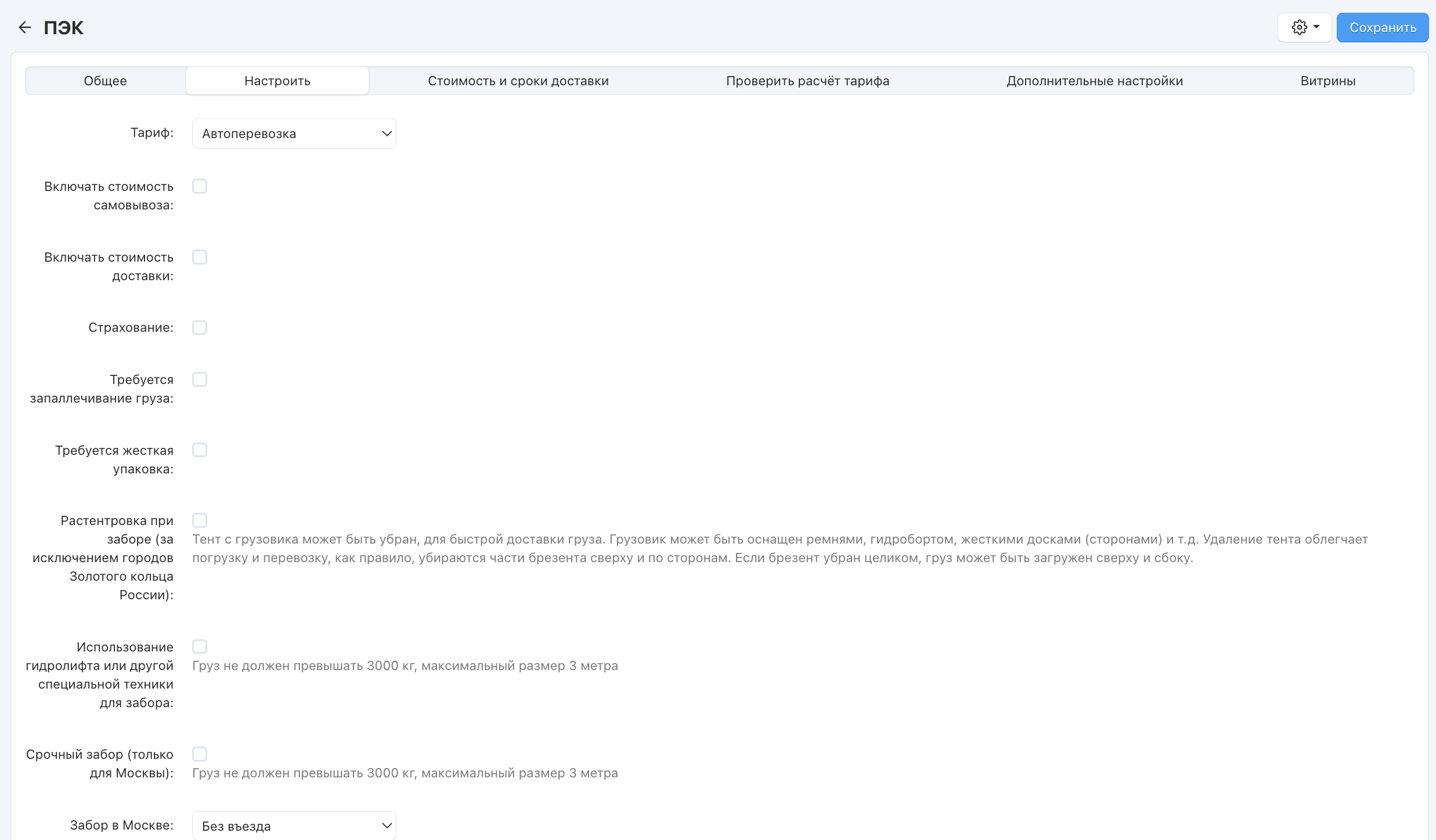 Выполните настройку нового способа доставки во вкладке “Настроить”.
