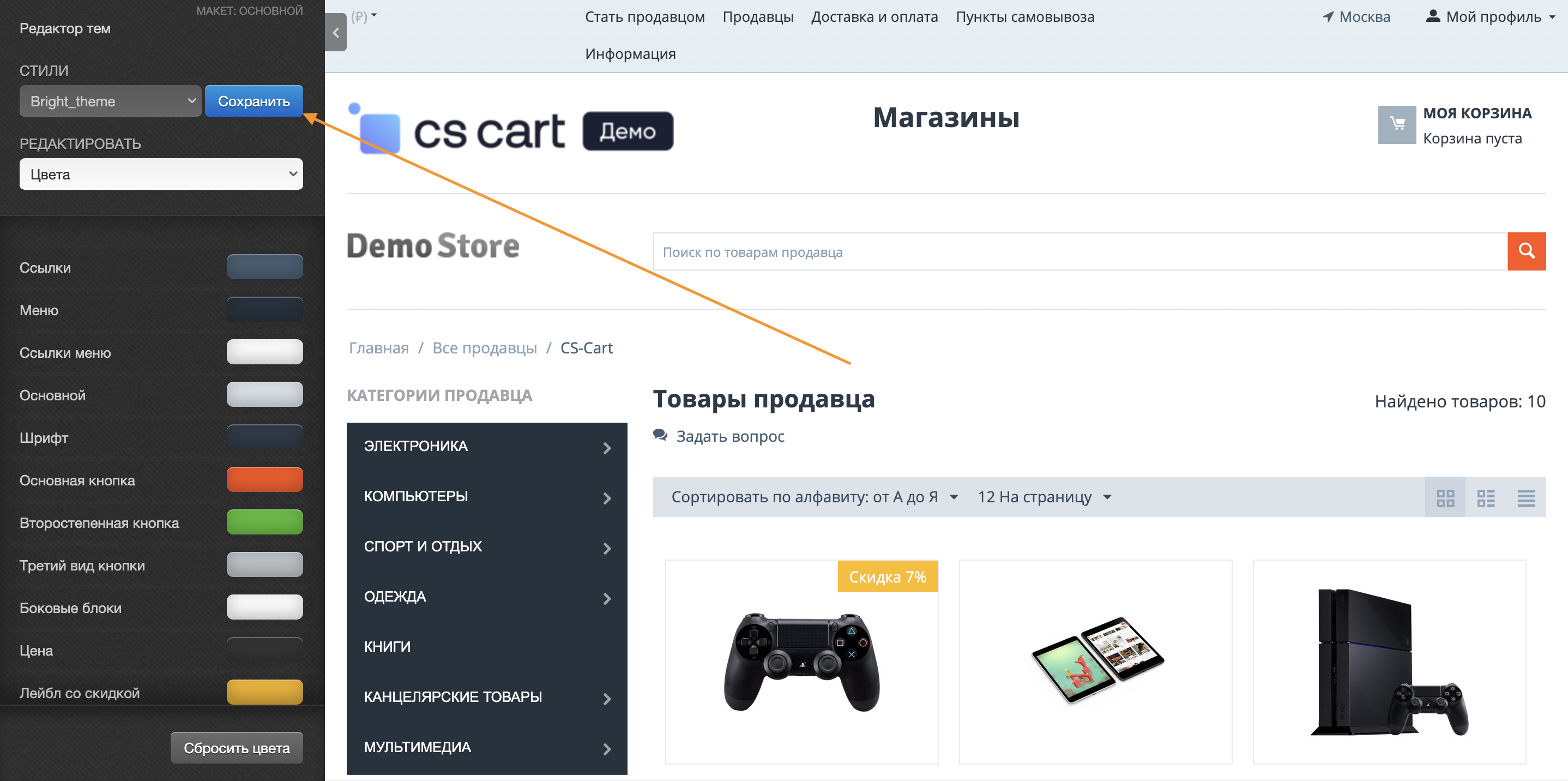 - Разрешить продавцам управлять стилями темы — позволяет продавцам использовать редактор тем.