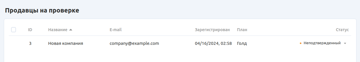 Вкладка Продавцы содержит список всех продавцов, которые только что присоединились к маркетплейсу.