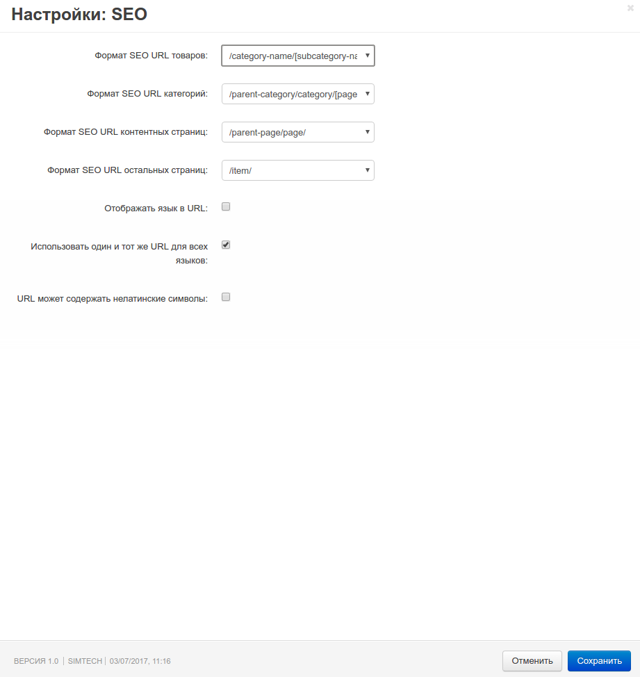 Общие настройки и настройки модулей можно посмотреть и изменить через панель администратора. Отображение настроек зависит от edition_type (см. Приложение №1: Значения edition_type):