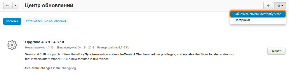 2.3. Нажмите кнопку Скачать для загрузки пакета обновлений.