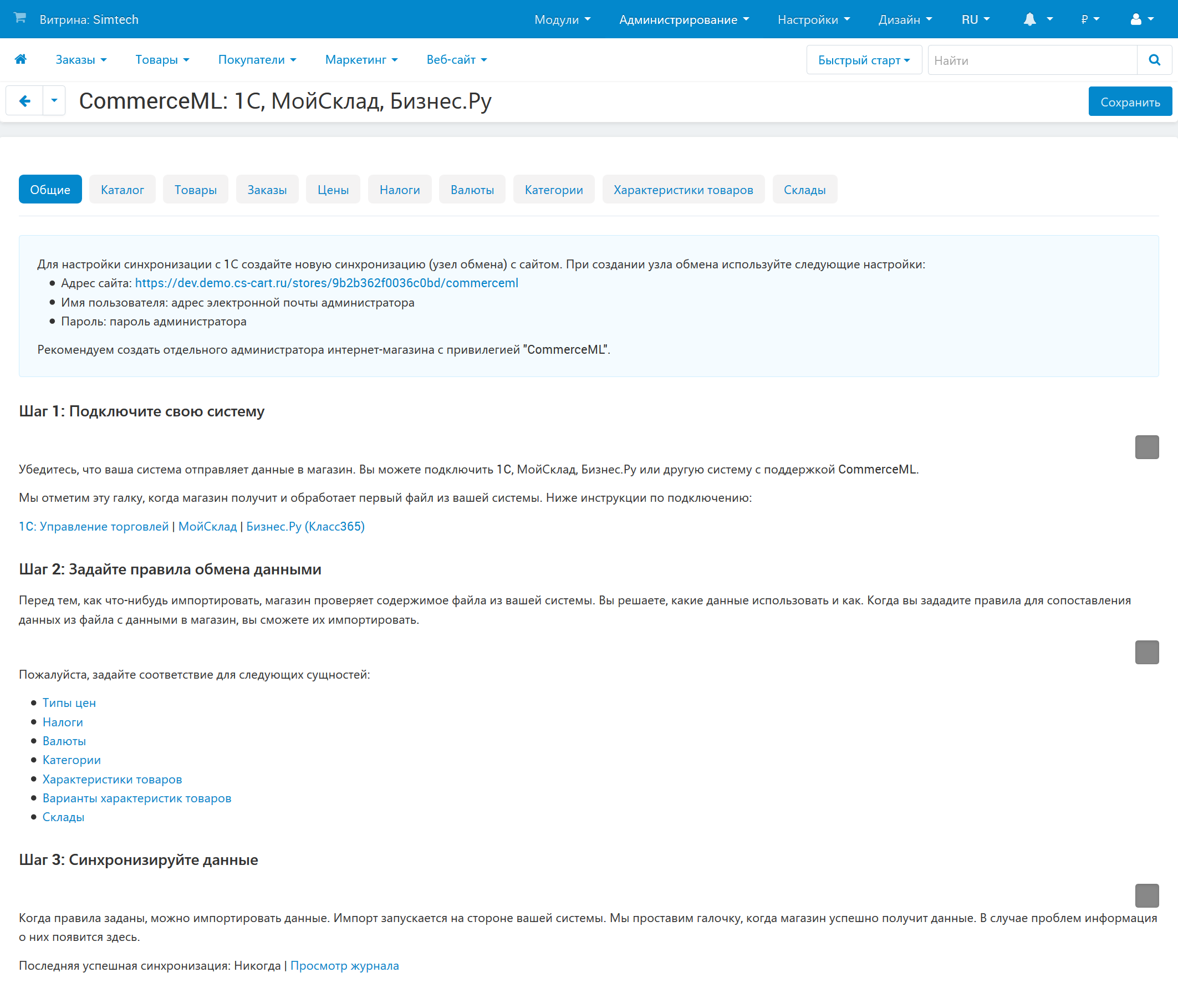 Инструкция по обмену данными в формате CommerceML между системой Class365 (Бизнес.Ру) и Русской версией CS-Cart или Русской версией Multi-Vendor.