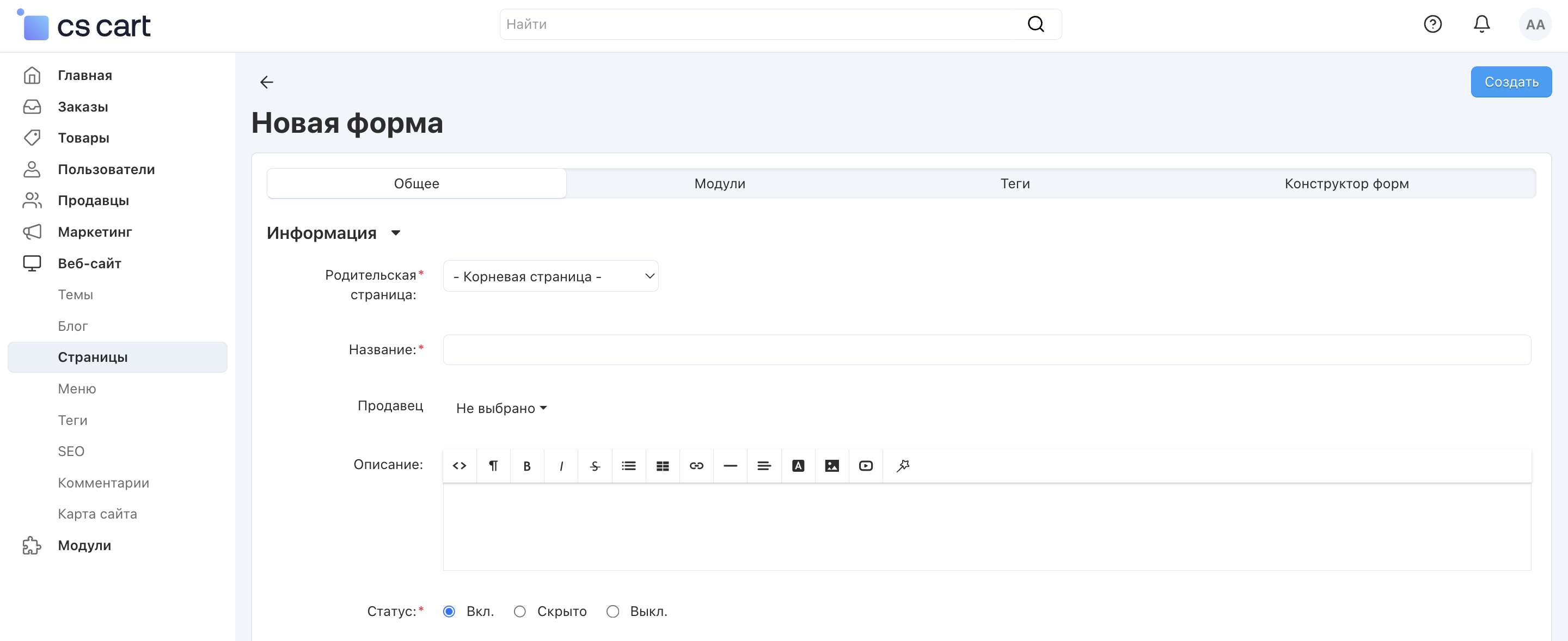 1. Откройте раздел Веб-сайт → Страницы.