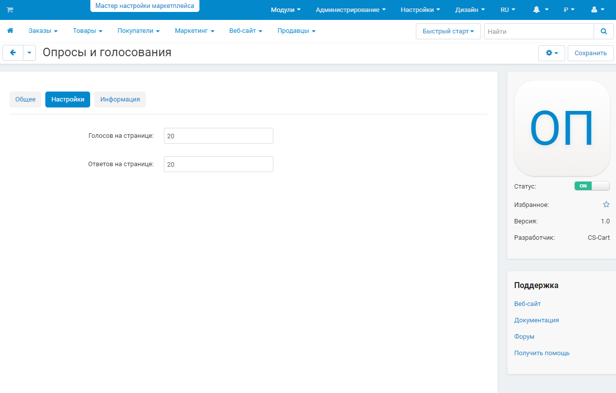 • Голосов на странице – Количество опросов и голосований на одной странице.