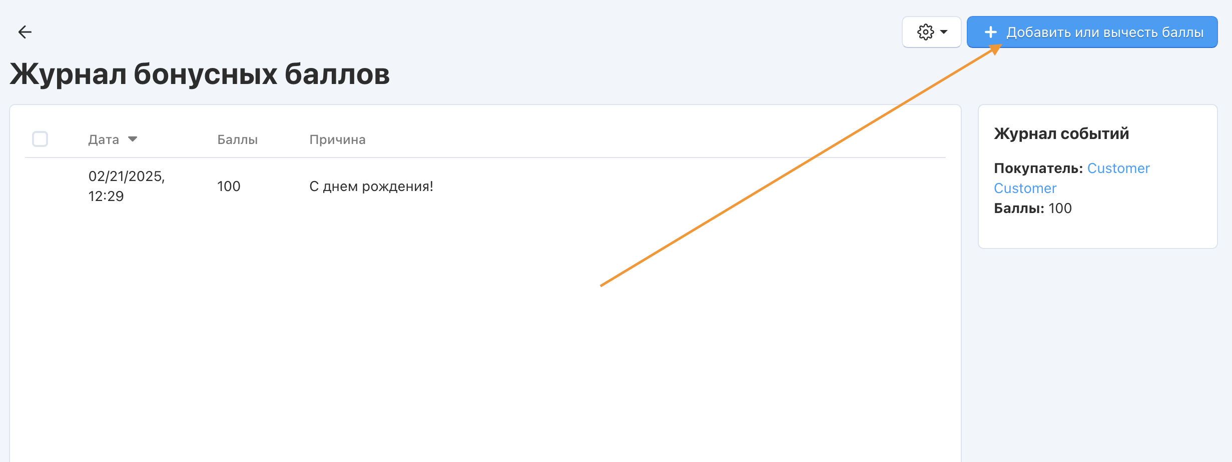 Откроется новая страница. На ней нажмите кнопку +, чтобы начислить или снять баллы.