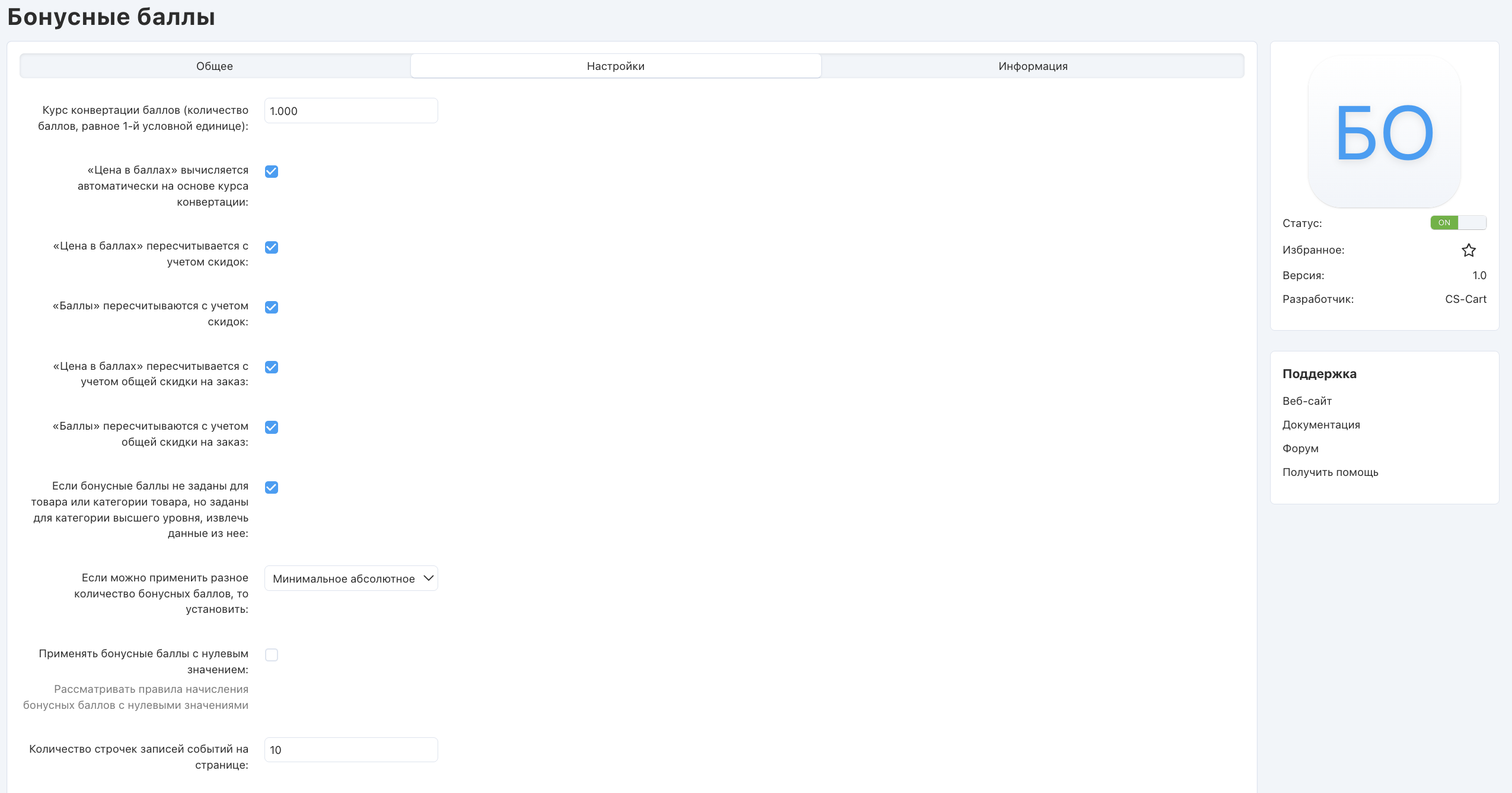 Задайте нужные вам настройки модуля “Бонусные баллы”.