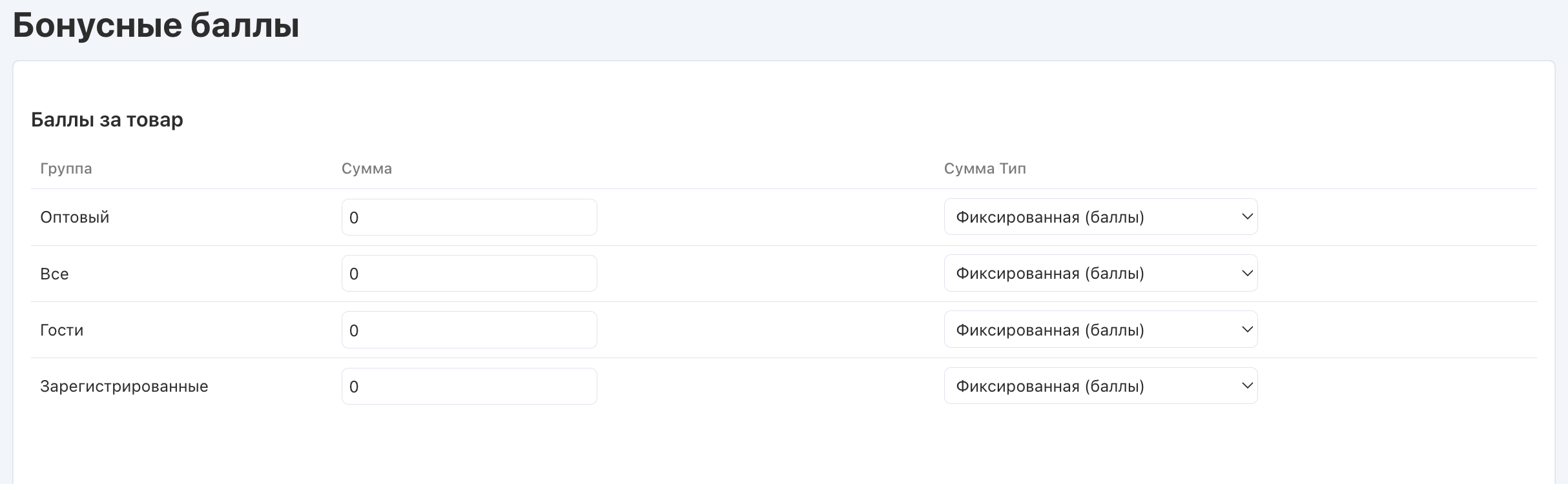 - Фиксированная (баллы) — количество баллов, получаемых покупателем за покупку одного товара будет фиксированным и не будет зависеть от цены этого товара.