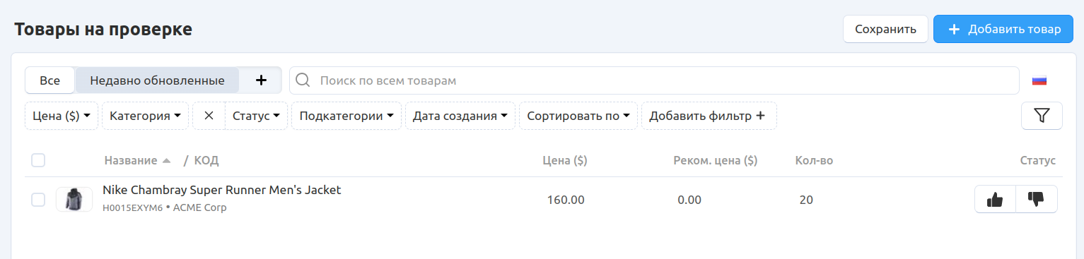 • Проверка новых товаров — если требуется одобрение новых товаров продавца, то покупатели их не увидят, пока администратор их не одобрит.