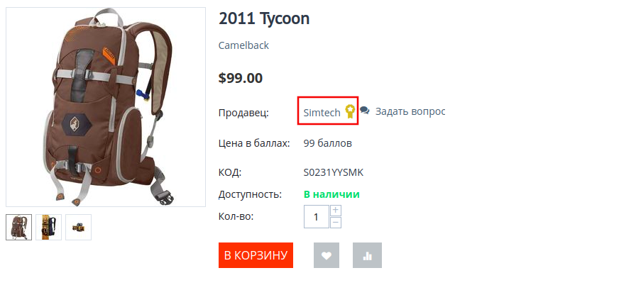 В зависимости от рейтинга, модуль позволяет разделить всех продавцов на уровни: бронзовый, серебряный и золотой. Уровень продавца отображается в виде значка рядом с его именем.