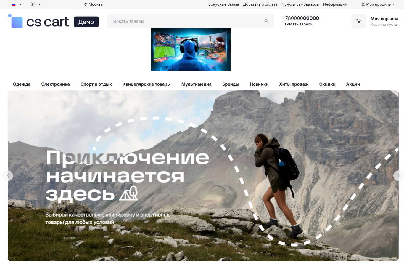 Пример баннера для категории “Видеоигры”, при клике на который открывается соответствующий раздел.