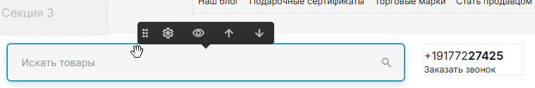 - кнопка с изображением глаза позволяет скрыть элемент на витрине, а при повторном нажатии — показать его;