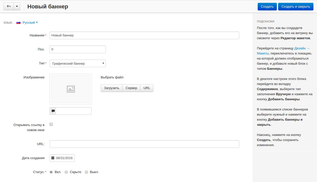 • Введите Название баннера (например, Новый баннер).