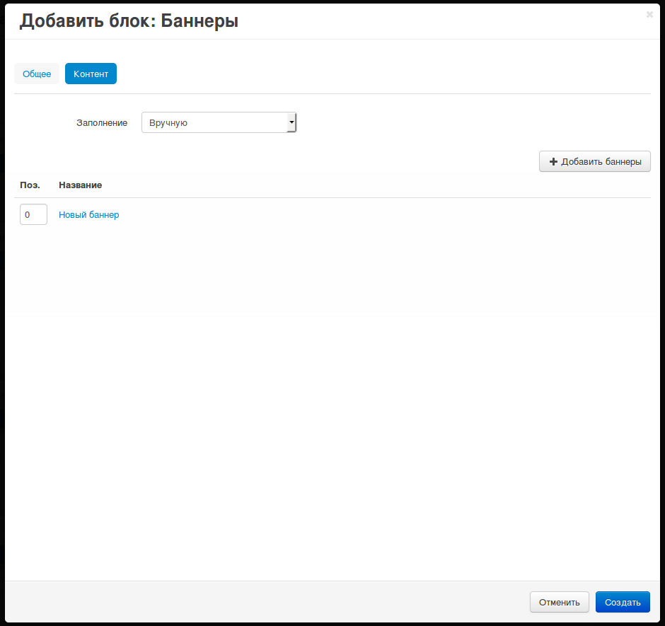 3. Переключитесь на вкладку Создать новый блок и выберите тип блока Баннеры. В открывшемся окне:
