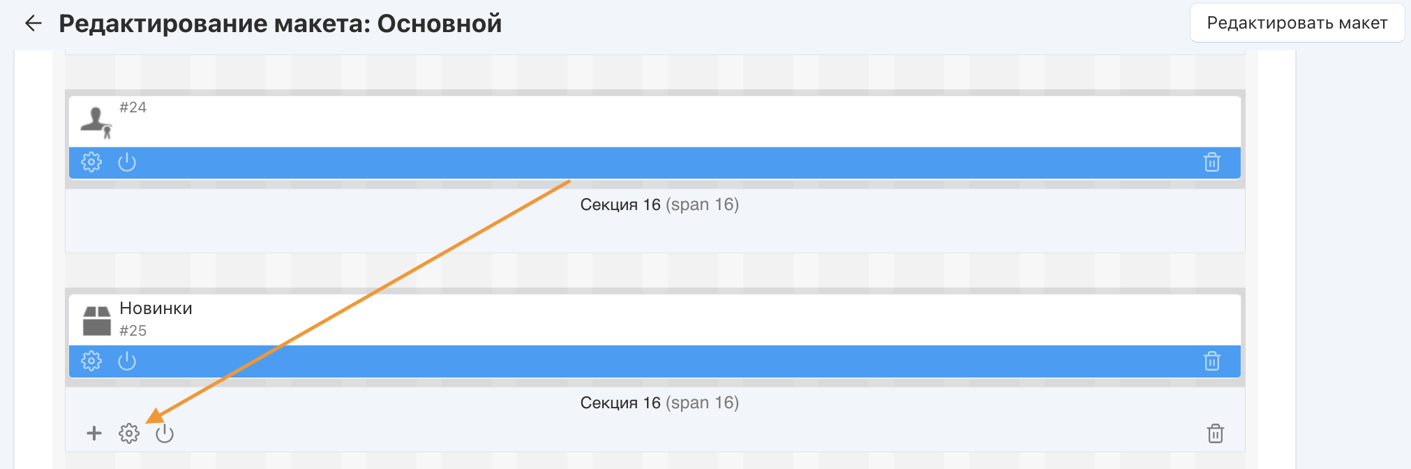 2. Откройте страницу редактирования секции, содержащей нужный блок;