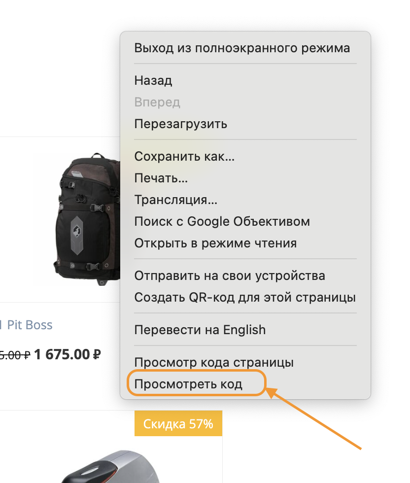 1. Откройте DevTools: Щелкните правой кнопкой мыши по элементу, который вы хотите стилизовать, и нажмите Посмотреть код (Inspect). Это откроет панель DevTools, где вы увидите HTML-структуру выбранного элемента и связанные стили CSS.