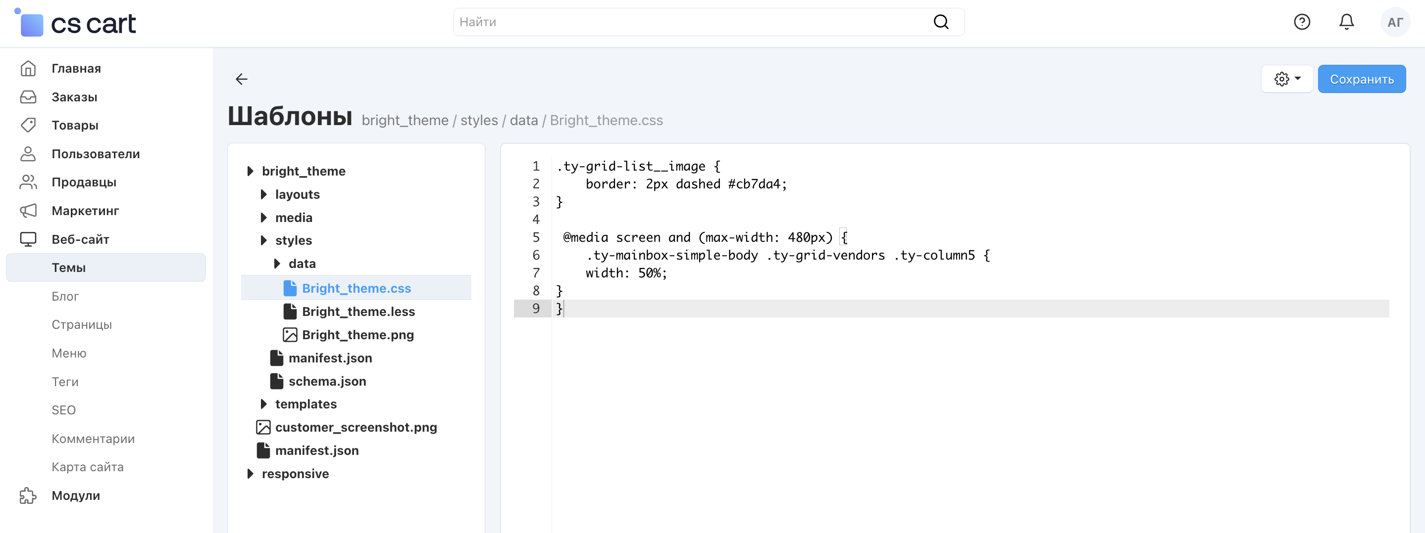 В этой статье мы рассмотрим возможности Custom CSS в CS-Cart на примере Bright theme, темы CS-Cart по умолчанию. Правила CSS, с которыми вы столкнетесь в этой статье, могут не работать в вашем магазине, если вы используете другую тему.